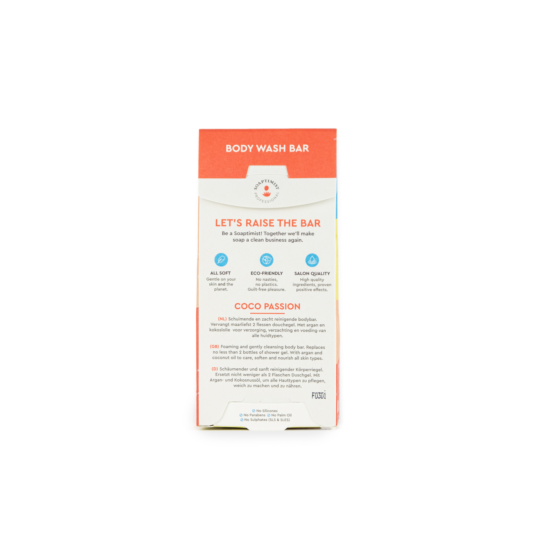 Foaming and soft cleansing body bar with the scent of coconut, mango and passion fruit, you will feel like you are in tropical places. With argan and coconut oil for care, softening and nourishment of all skin types. Our body bars are palm oil free. Gentle for you and gentle for the planet. 1 bar replaces at least 2 bottles of shower gel.
