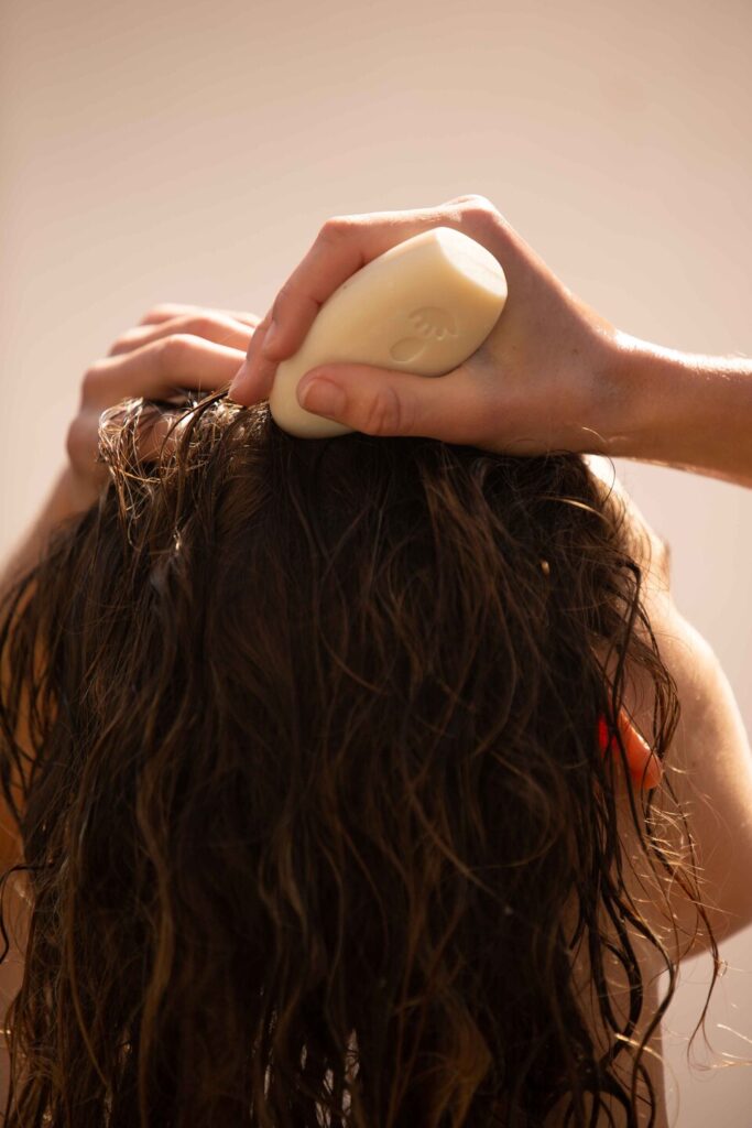 Shampoo bars van Soaptimist zijn gemaakt om te staan. Je kan ze als een soort stift gebruiken. Maak je haar nat. Breng de shampoo met de afgevlakte kant, direct aan op je haar.
