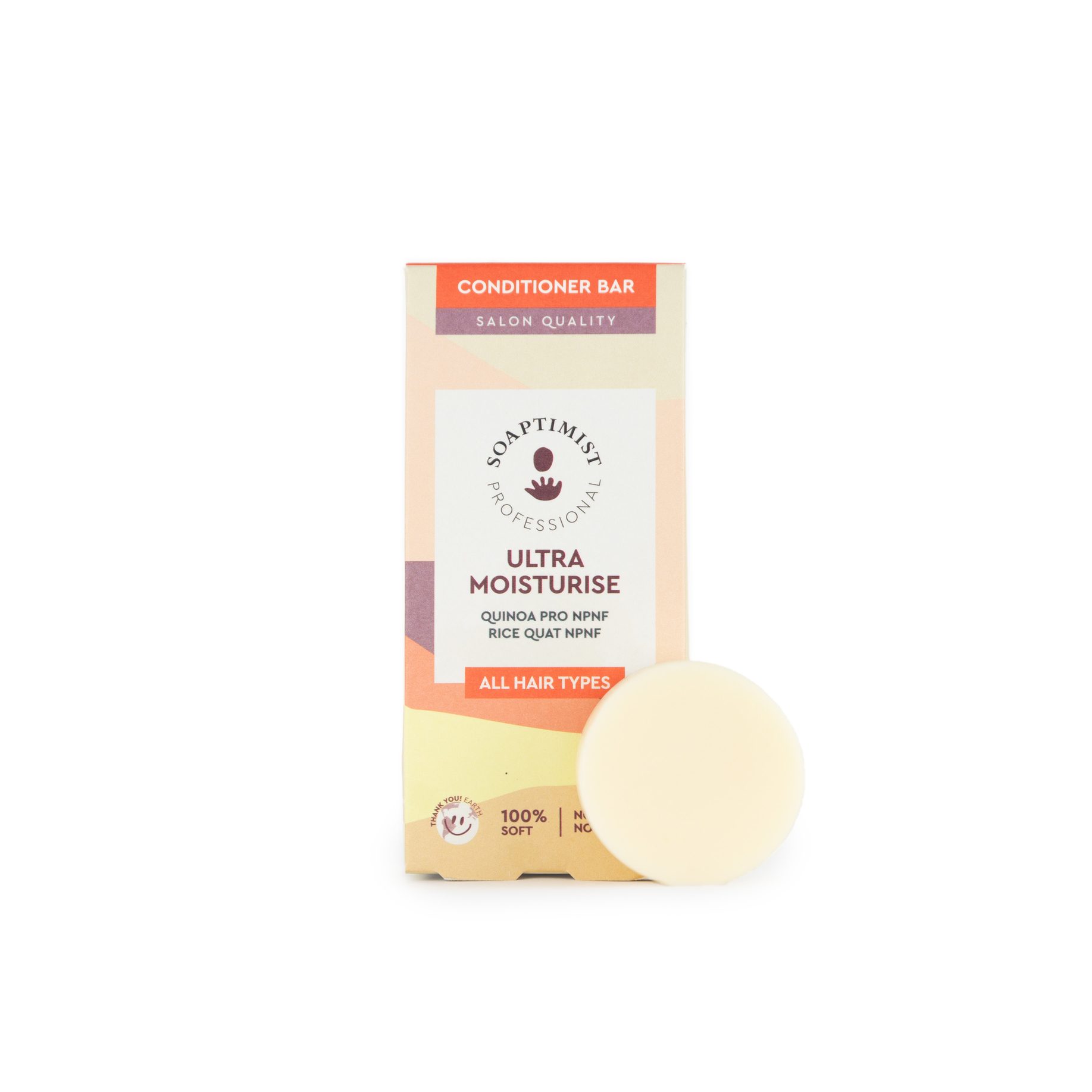 Momenteel wordt de conditioner bar niet geleverd. Waarom? We horen geluiden, en ervaren zelf, dat deze tegenvalt. Soaptimist gaat voor Salon kwaliteit. Hoe graag we ook een conditioner in vaste vorm willen leveren, het resultaat is niet voldoende. En er is momenteel nog niets beters op de markt.