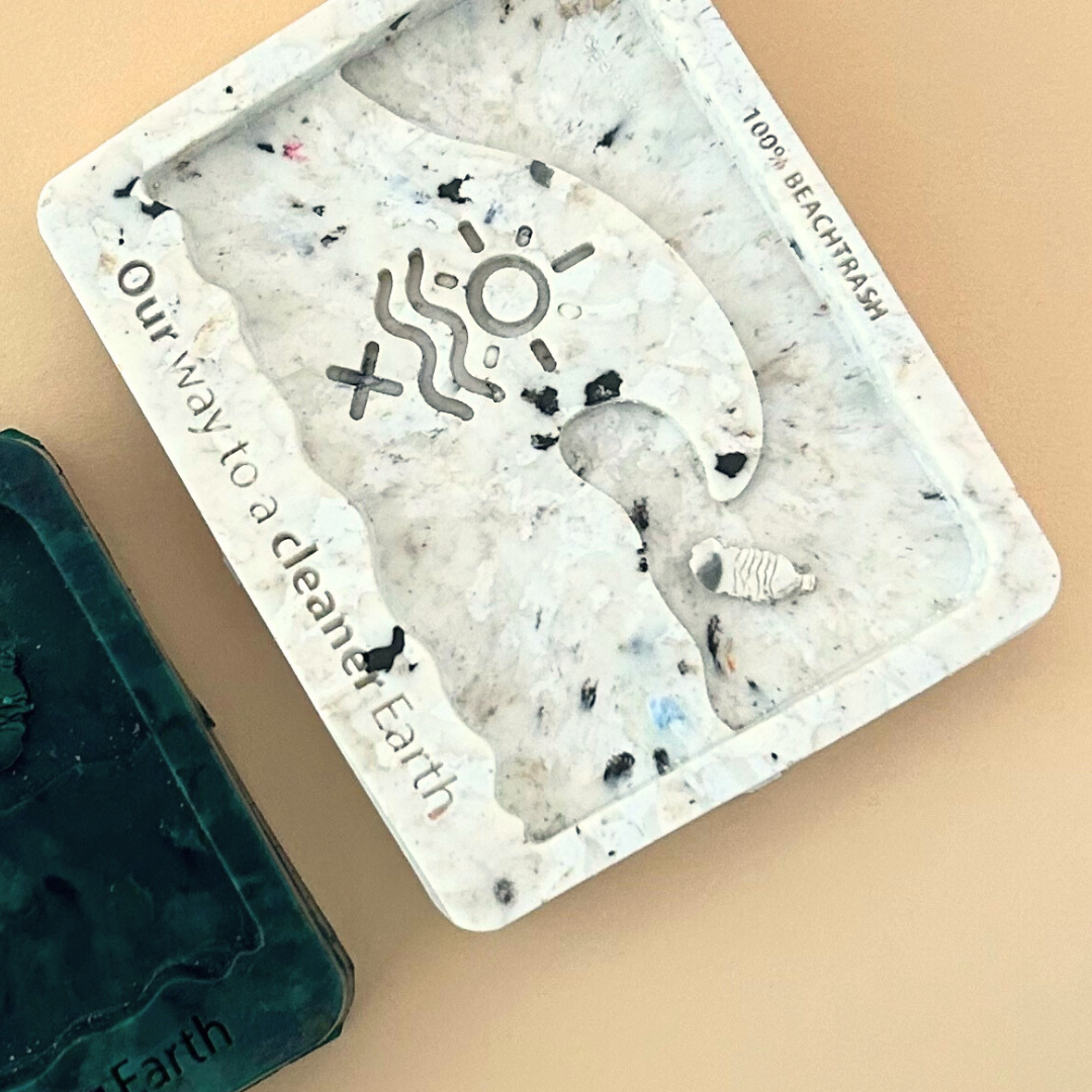 Nieuw in het assortiment is een zeepbakje van 100% beach trash. Gemaakt door Juttersgeluk.